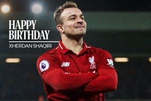 利物浦祝沙奇里34岁生日快乐,效力红军期间出战63场8球9助